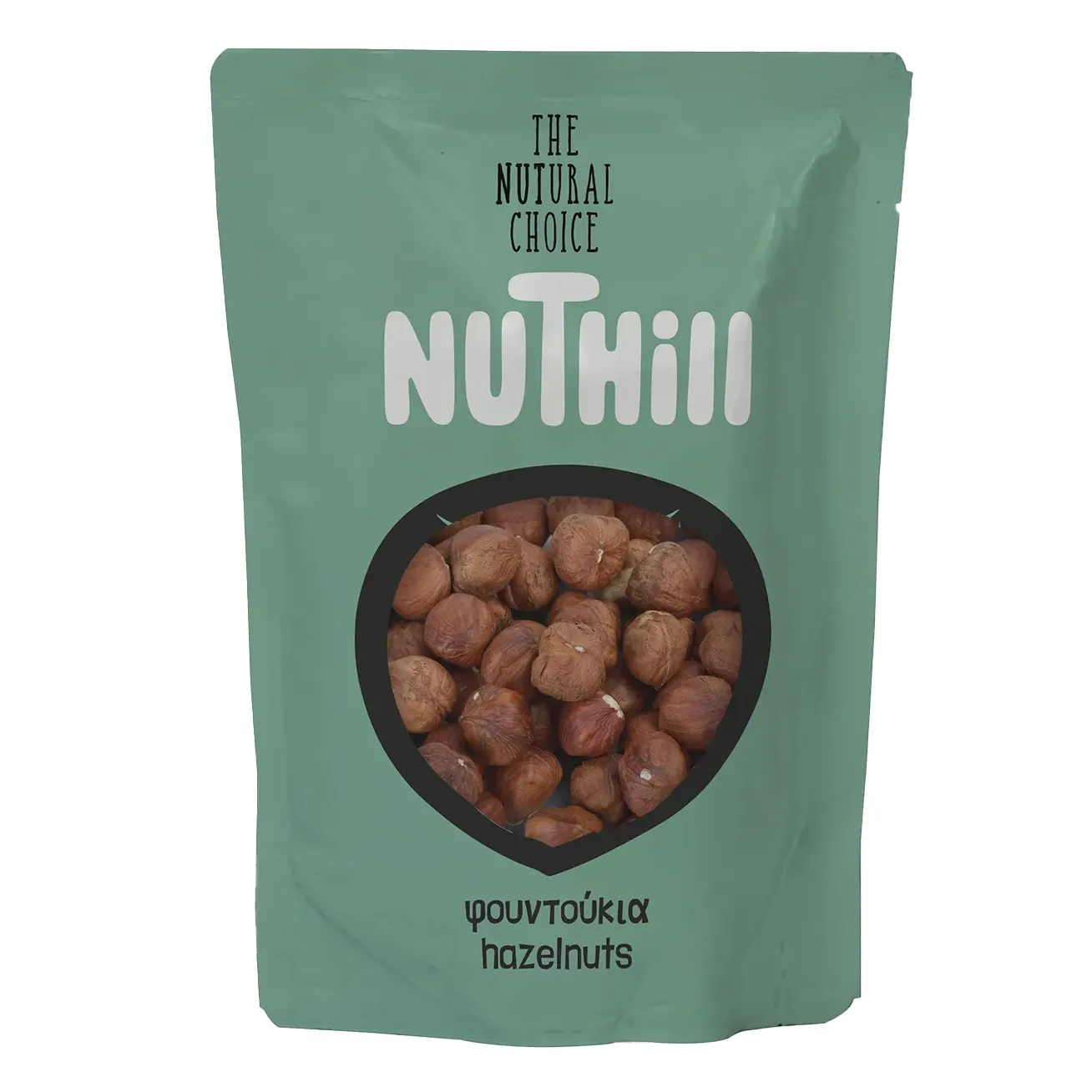 Ελληνικά φουντούκια, ψημένα, χωρίς προσθήκη αλατιού. Vegan προϊόν ,χαμηλό σε νάτριο, χαμηλό σε σάκχαρα. Καλή πηγή φυτικών ινών και πρωτεΪνών.