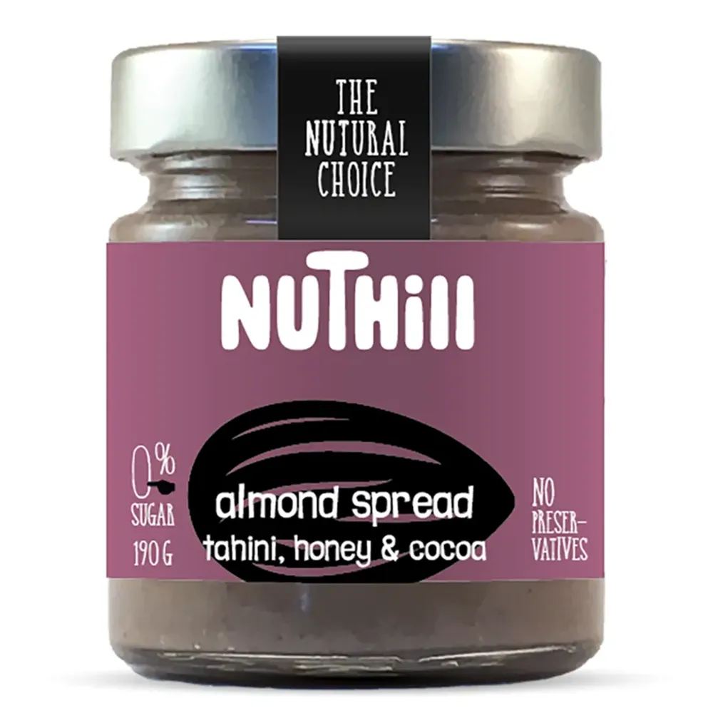 Ταχίνι με 20% αμύγδαλο, μέλι και κακάο. Προϊόν χωρίς προσθήκη ζάχαρης, με φυτική πρωτεΐνη. Απαλή γεύση και εύκολη επάλειψη. Κατάλληλο για δίαιτες χωρίς γλουτένη και για τη νηστεία.